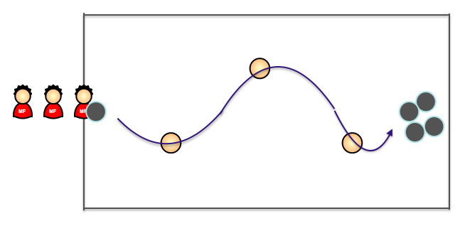 センターリングは、ゴールまでの距離もある程度あるので弱いパスでは、オフェンスにうまく繋がりません。